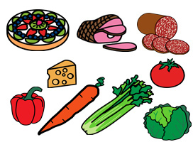 Selection of Vegetables, Ham OR Salami, Cheese, Tarts & Garden Salad